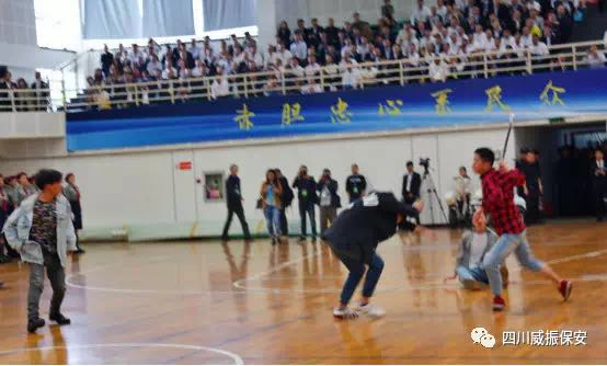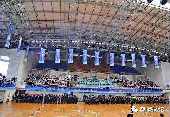 今天上午10点,由四川省保安协会主办,来自全川10个方队的300余名保安员在成都信息工程大学体育馆举行“迎大庆、忠职守、保平安”大演练;另外,还有省内外480余家保安公司的负责人及代表共1000余人、新闻媒体17家50余人一同参与了本次活动。
