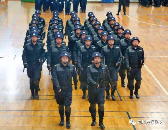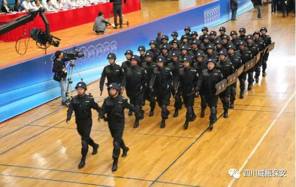 上面走过的第三演练方队,他们是来自四川威振保安服务有限公司的管理层和基层员工,管理层大多来自于自主择业军转干部和退役军人,他们曾为国家的安全稳定无私奉献,现在在维护社会稳定中也发挥着积极作用;基层员工中有被评为“金牌保安员”、“全省先进保安员”的,还有优秀员工代表。今天,他们带来的是防暴袭击应急处突演示。