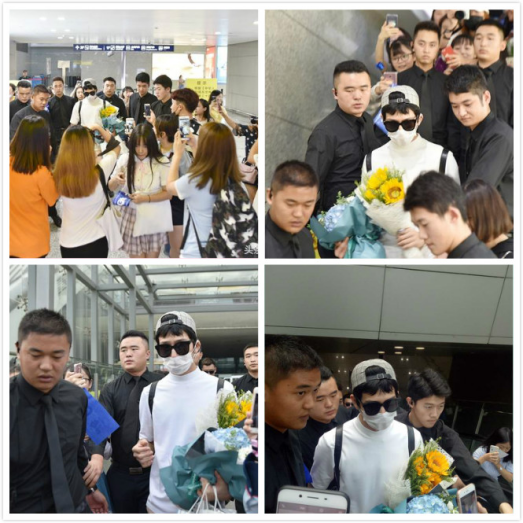图3:众多粉丝接机,全程获“黑衣人”护航